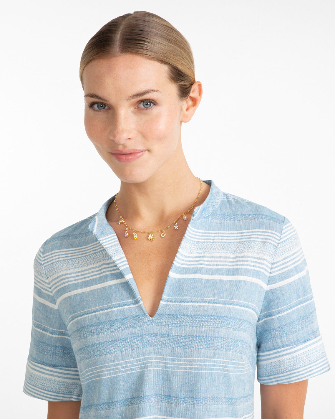 A little shimmer, a little sentiment, and just enough sparkle to feel special. This delicate gold-tone necklace is finished with a collection of symbolic charms, each one thoughtfully chosen to bring a touch of luck, light, and joy to your day. Wear it solo for an effortless hint of shine or layer it with your everyday favorites.
