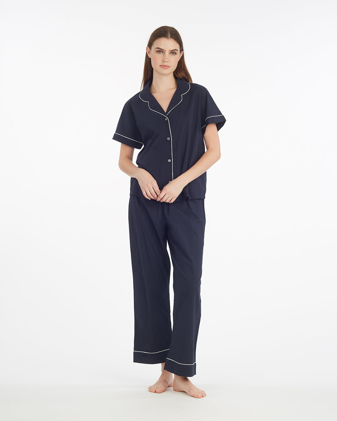 Que linda! Our Woven Linda Pajama Set in 100% cotton is as comfy as it is cute, perfect for couch-sitting, dog-walking and whatever else you might have planned.Â