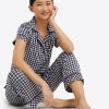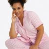 Pajamas must be three things: soft, comfortable, and full of personality. This set does it all — complete with our signature gingham print, functional button front top, contrast piping, and elastic waist bottoms. Sweet dreams!