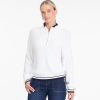 The Quarter Zip Sweater in ivory and navy is a cozy-meets-sporty staple you’ll wear on repeat. Designed in a soft ivory knit with navy tipping at the cuffs, hem, and collar, it’s a fresh take on a classic layering piece. The relaxed fit makes it easy to throw on with jeans, skirts, or joggers, while the ribbed trim keeps the look polished. Comfortable and versatile, this sweater is perfect for casual weekends, travel days, or everyday wear.