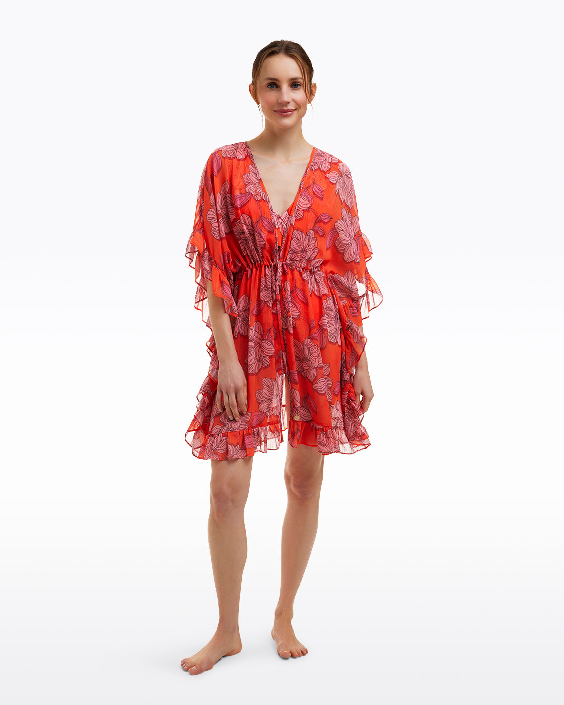 We’ve got you covered. Our Ruffle Caftan Cover Up is a perfect topper to throw over your favorite bikini or one-piece. You might even find that it’s too cute to confine to the beach. Feel free to swap out your flip-flops for sandals and wear it to lunch, a pool party, even drinks!