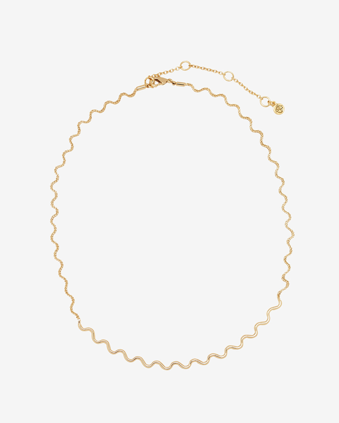 This gold-tone ripple necklace is equal parts timeless and eye-catching, with delicate curves that catch the light from every angle. Whether you’re layering it up or letting it shine solo, it’s the kind of piece that effortlessly pulls any look together.