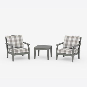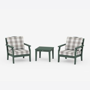 Heritage design. Modern all-weather durability. Sweet scalloped details. This exclusive collection is our love letter to Southern charm and hospitality. With a place to put drinks and sink-in cushions for all-day comfort, the Draper James by POLYWOOD Savannah 3-Piece Deep Seating Set invites folks outside for warm gatherings and well-deserved downtime.