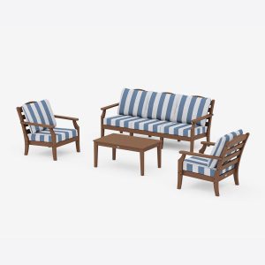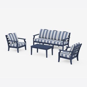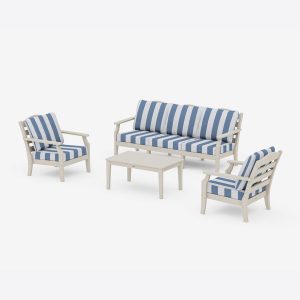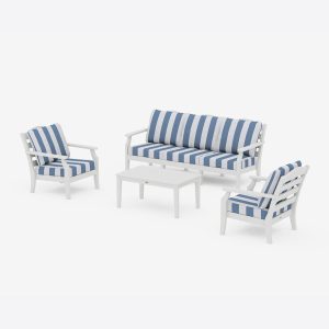 Heritage design. Modern all-weather durability. Sweet scalloped details. This exclusive collection is our love letter to Southern charm and hospitality. With a place to put drinks and sink-in cushions for all-day comfort, the Draper James by POLYWOOD Savannah 4-Piece Deep Seating Set with Loveseat invites folks outside for warm gatherings and well-deserved downtime.
